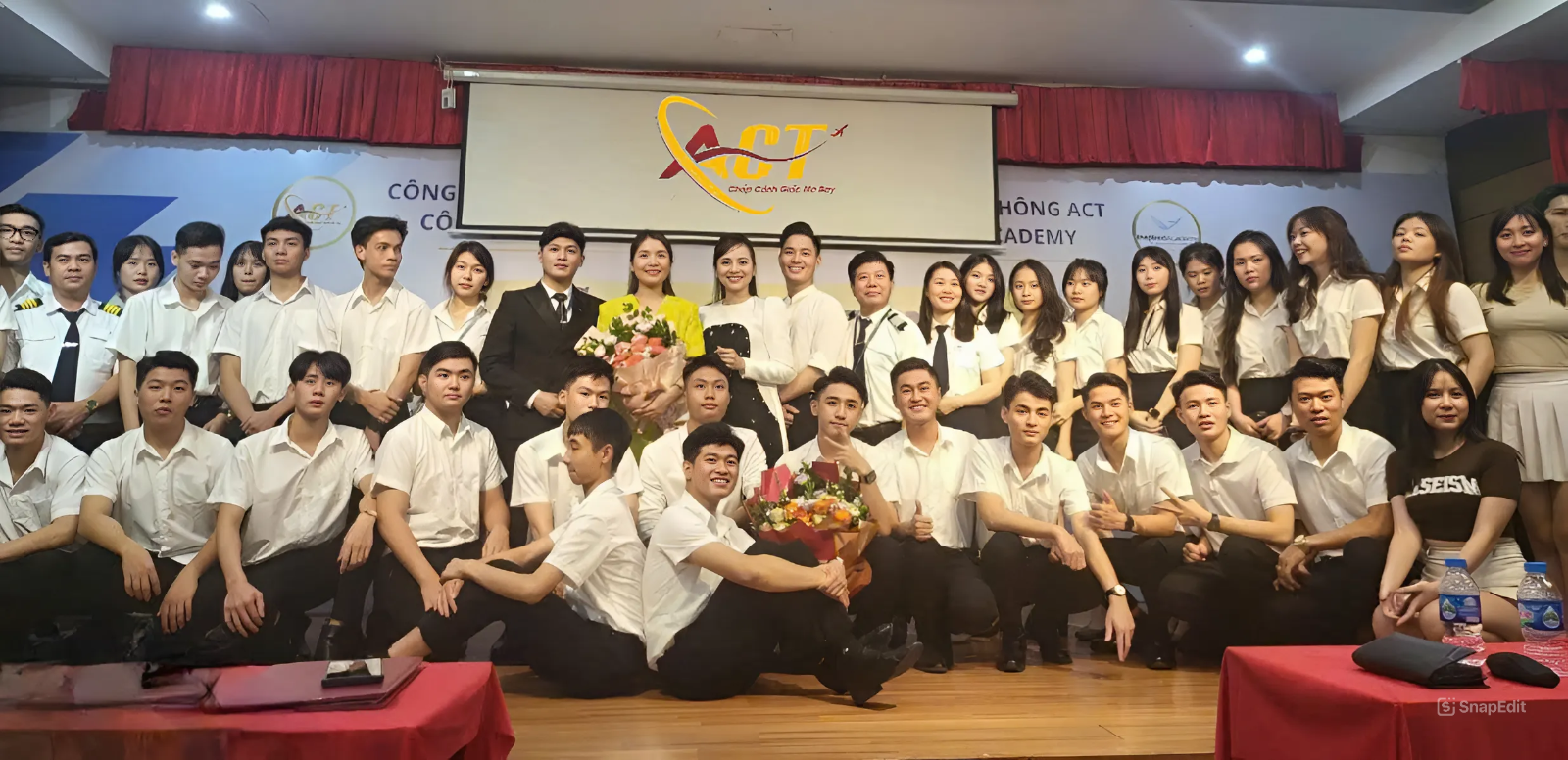 LỄ KHAI GIẢNG LỚP ĐÀO TẠO TIẾP VIÊN HÀNG KHÔNG VÀ NHÂN VIÊN MẶT ĐẤT TẠI TP.HCM Ngày 28/05/2025 | ACT & Inspired Academy Chiều ngày 28/05/2025, tại TP. Hồ Chí Minh, ACT phối hợp cùng Trung tâm Đào tạo Inspired Academy đã tổ chức thành công Lễ Khai giảng Lớp Đào tạo Tiếp viên Hàng không và Nhân viên Mặt đất, mở đầu cho hành trình học tập và rèn luyện của các học viên trẻ đầy tiềm năng, khát vọng và đam mê ngành dịch vụ hàng không.